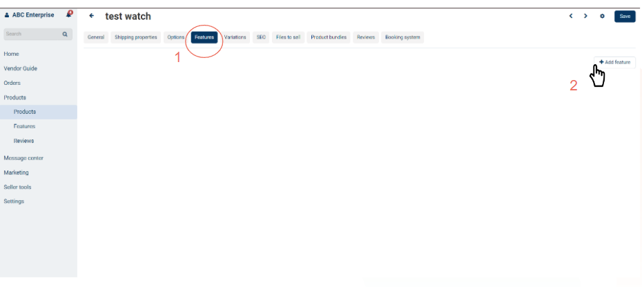 Add Product Features allows you to define unique attributes for your products, such as color, size, or specifications. The purpose is to provide detailed information and options to customers, helping them make informed purchasing decisions. To add features: