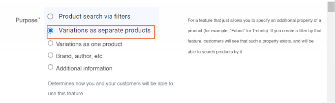 4. Choose “Variations as Separate Products” to show each variation as a separate item.