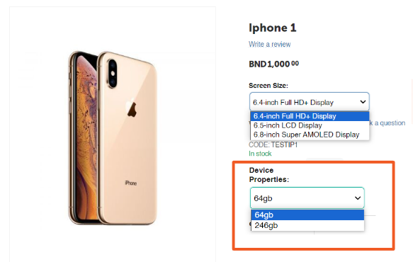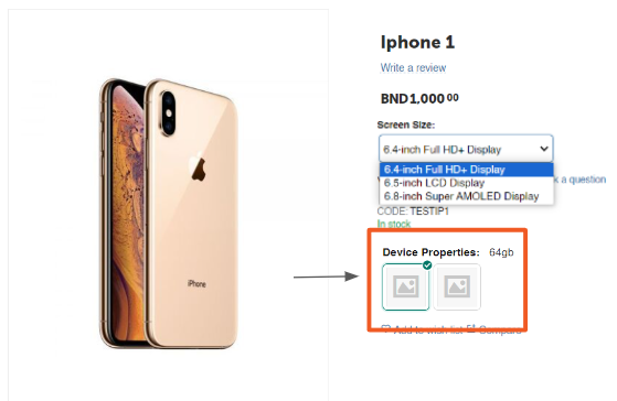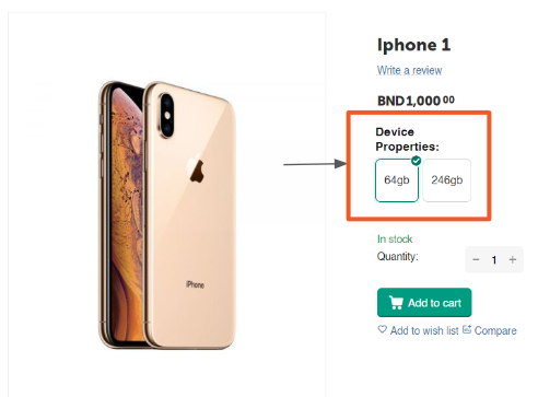 On the storefront, the product will look something like this, depending on the settings you chose during ‘feature’ and ‘variation’ creation.