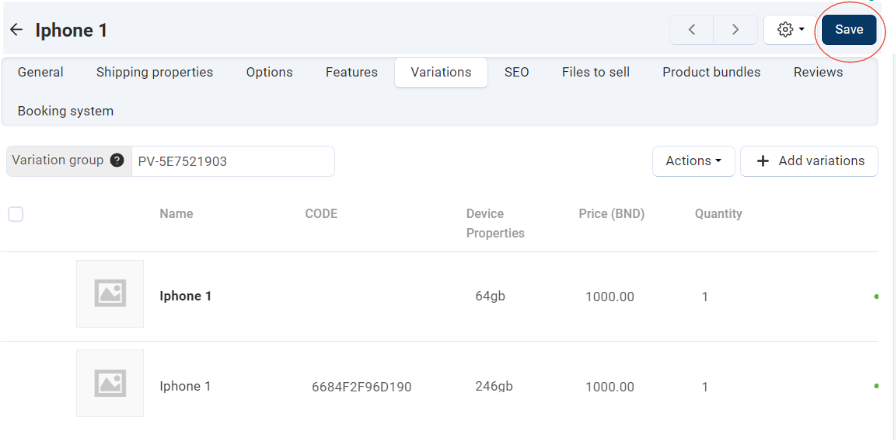 - Once you are satisfied with the feature and variations, click ‘Save’ at the top right.