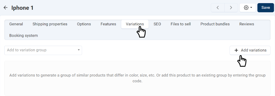 Add Product Variants enables you to create different versions of a product based on its features, such as multiple color or size options. The purpose is to organize these variations efficiently under one product or separate listings, depending on how you want them displayed, making it easier for customers to choose from various options. To product variants: