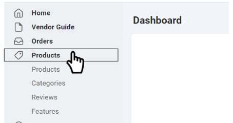 1. Click on the “Product” tab from the side menu, then click “Products” again.