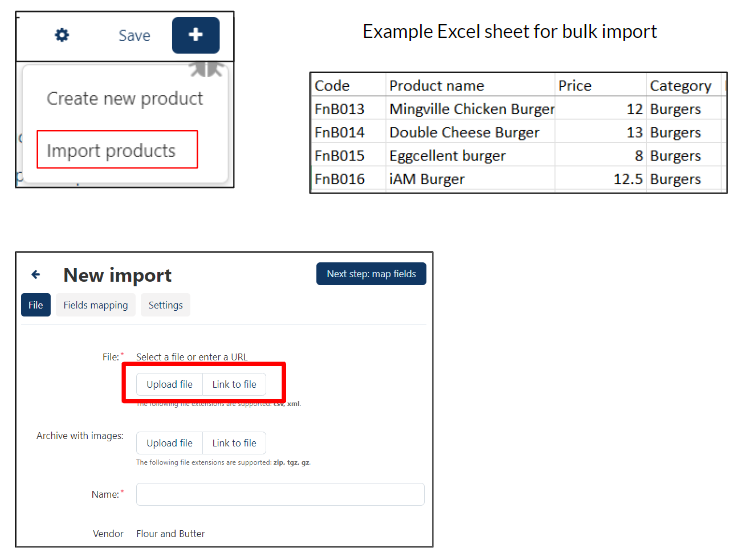 - If you have a list of products in an excel sheet, bulk import it at once.