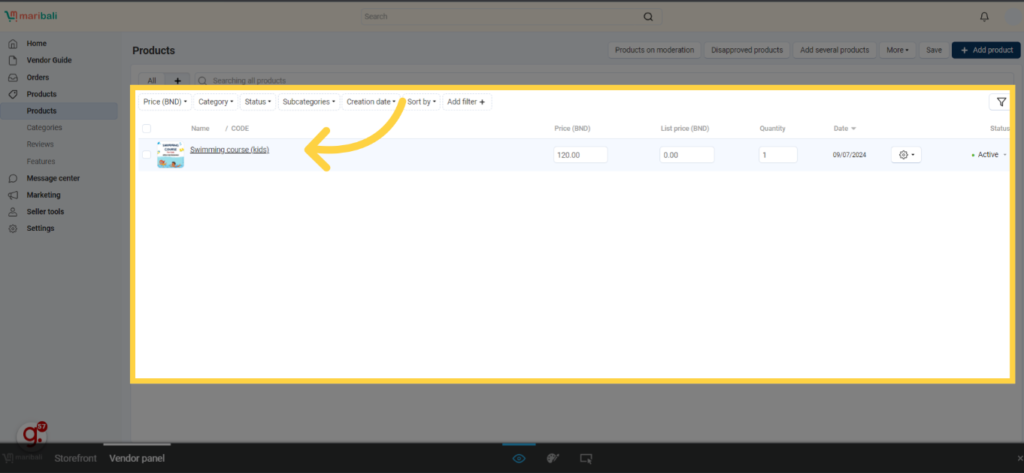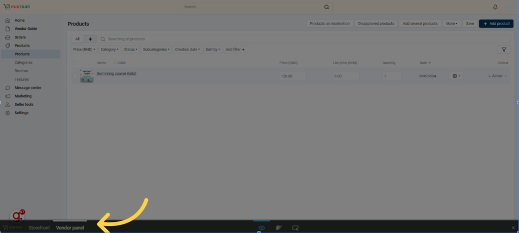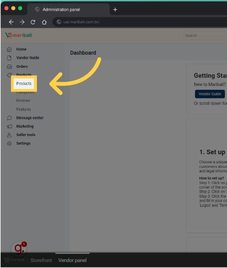 19. To make any edits, click Vendor Panel to return to the dashboard.