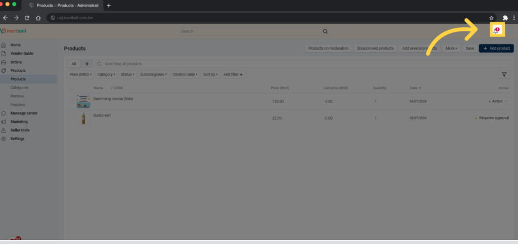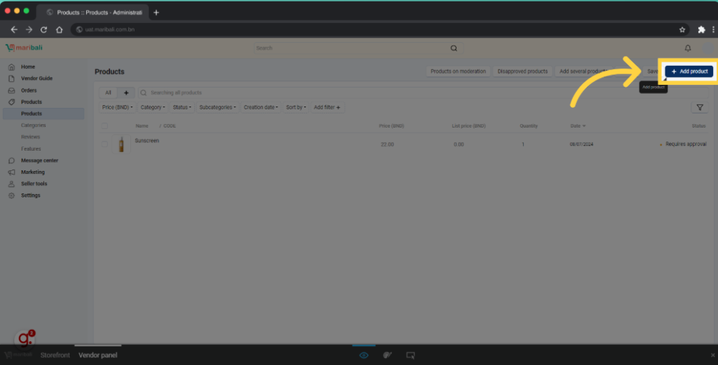 2. Click + Add Product or proceed to step 7 if the product is already created.