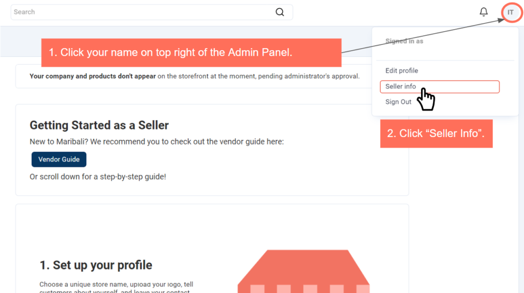 2. Select “Seller Info” from the drop-down menu to begin customizing your store profile.